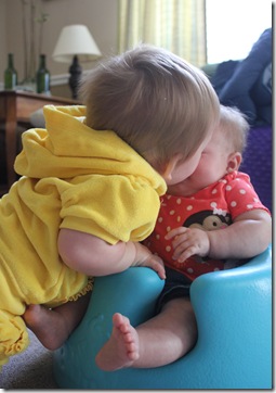 Taylor had a lunch/play date today with her girlfriend, Sophie. After her nap, she was well rested and ready to play! Sophie is 4 months old now, and it’s so cute watching the two of them play and interact. Taylor is so into babies these days. She wants to touch them and kiss them right in the face!